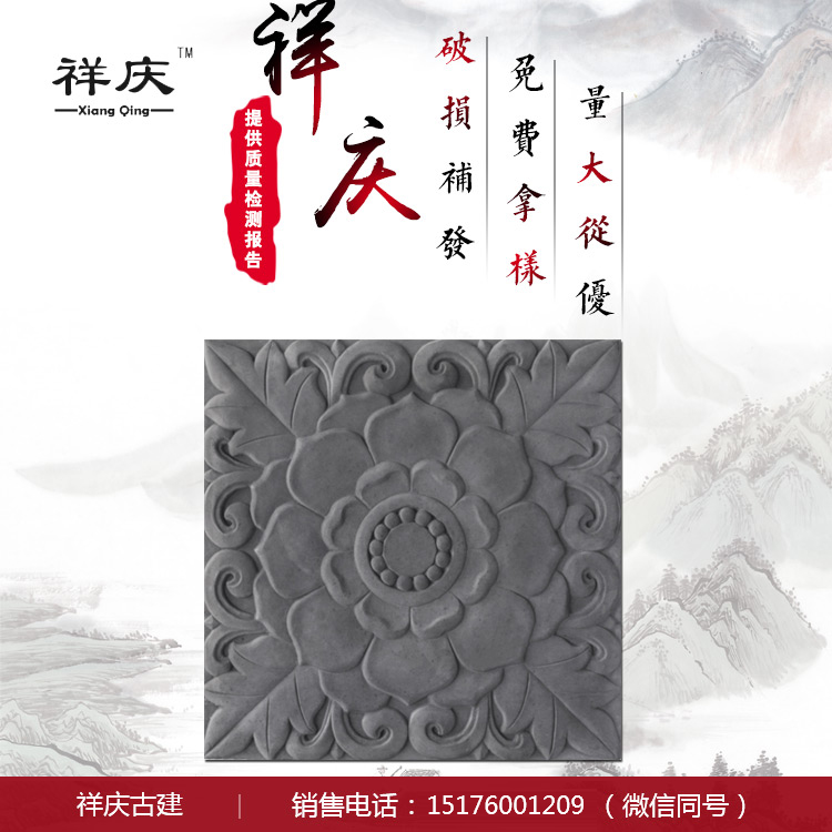 河北祥慶燒結(jié)瓦有限公司,始建于2009年,前身為河北鴻祥古建,公司于2017年因規(guī)模擴(kuò)大,正式成立河北祥慶燒結(jié)瓦有限公司,我公司主要生產(chǎn)琉璃瓦,青瓦,青磚,古建磚瓦,磚雕,古建筑材料。在生產(chǎn)琉璃瓦,青瓦,青磚,古建磚瓦,磚雕,古建筑材料的過(guò)程中,選料精挑細(xì)選,嚴(yán)格按照生產(chǎn)要求進(jìn)行調(diào)配。在生產(chǎn)過(guò)程中,我們嚴(yán)格 把關(guān),層層監(jiān)管,責(zé)任到人,以確保燒制的琉璃瓦,青瓦,青磚,古建磚瓦,磚雕,古建筑材料的質(zhì)量達(dá)到客戶滿意。我廠下設(shè)青磚廠和青瓦廠兩個(gè)廠區(qū),專業(yè)生產(chǎn)員工30名另有專業(yè)的施工隊(duì)伍和管理團(tuán)隊(duì)。